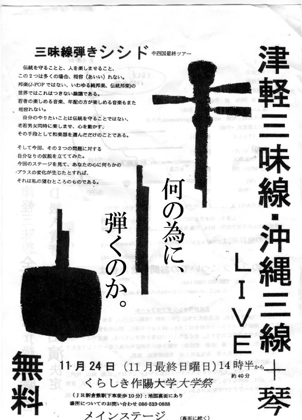岡山県のくらしき作陽大学でのラストライブのチラシ を見つけました。