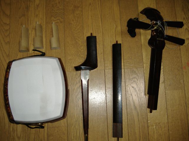 弦 全て絹製。切れやすいが、丈夫なナイロン製は音色が劣る。