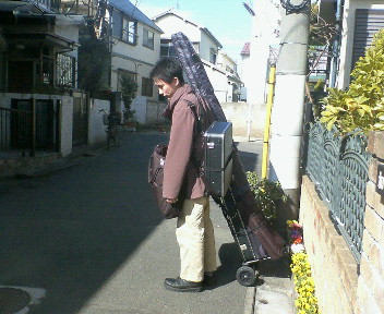 楽器を運んでいますが、
