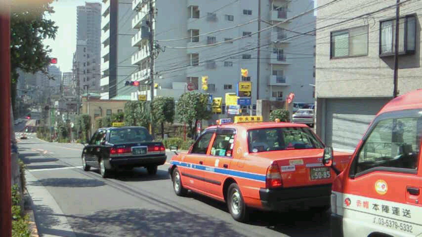 交差点でもないのに信号機があって車が止まってるな〜(両側はマンションとお墓の駐車場)