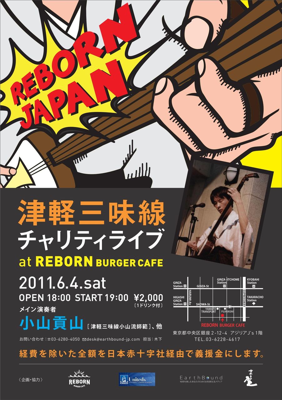 東銀座のバーガーカフェ Rebornにて、津軽三味線ライブを行います。