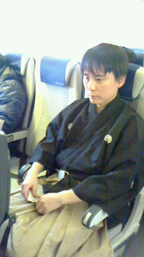 samurai on board not with sword with shamisen.友達の結婚式松山で演奏で着替えるのも面倒だからそのまま bachi,shamisen large pick handle includes lead inside,so I was stopped at baggage check.伊代節の歌詞に「高井の里のていれぎ(刺身のツマになる植物)」とあるのでていれぎが刺身のツマになるなら ○○君は□□さんの妻になるわけですな。とチャンチャン。I performed at friend's wedding. The way of knotting strings of my hakama,traditional skirt like pants's is differnt from usual,I usually tie with cross shaped because only samurai used cross knots. It's called entertainers' way of tie because bridegroom and bride is the protagonists of the ceremony. Tsugaru aiya bushi cotains lyrics of wedding ceremony, so I sang it. あいやの今宵めでたい花嫁姿 親も見とれて嬉し泣きを弾き歌いしました。the lyrics parents shed happy tears to see brid's dress.