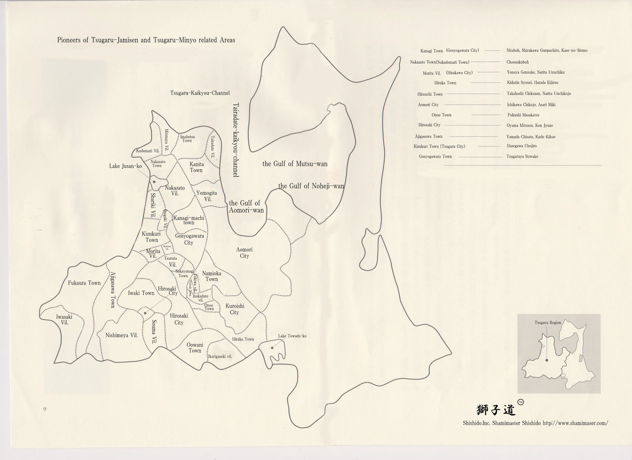 Dear Tsugaru- jamisen players, I added the tsugaru area map and tsugaru-jamisen and tsugaru-minyo folk song pioneers at the link below. http://www.shamimaster.com/tsugarushamisen.html I hope this site will help all English-speaking tsugaru-jamisen players to enrich the knowledge about tsugaru-jamisen. Sinserely. Shamimaster Shishido