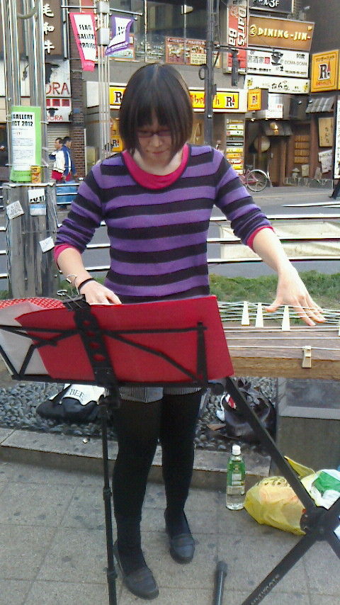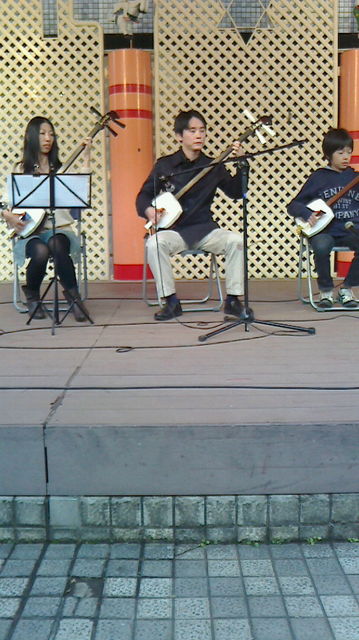 While busking at hachiouji I have boy try shamisen